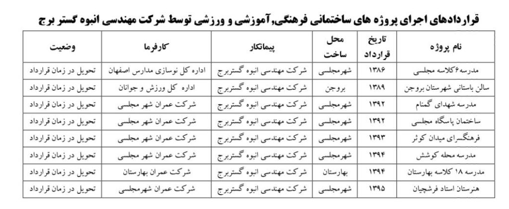 شرکت مهندسی انبوه گستر برج با شماره ثبت ۱۱۹۸ در سال ۱۳۸۲ تاسیس شده و در بخش ساخت انواع ساختمانهای مسکونی، آموزشی، فرهنگی، ورزشی و تجاری فعال است و در این مدت بیش از ۴۰ پروژه مختلف را ساخته و تحویل داده است.